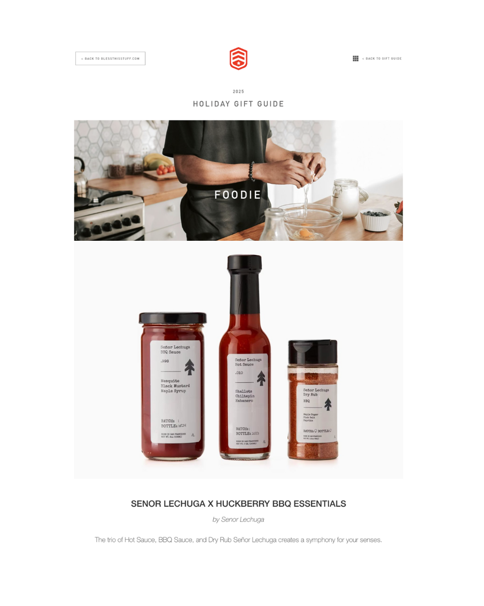 "The trio of Hot Sauce, BBQ Sauce, and Dry Rub Señor Lechuga creates a symphony for your senses."