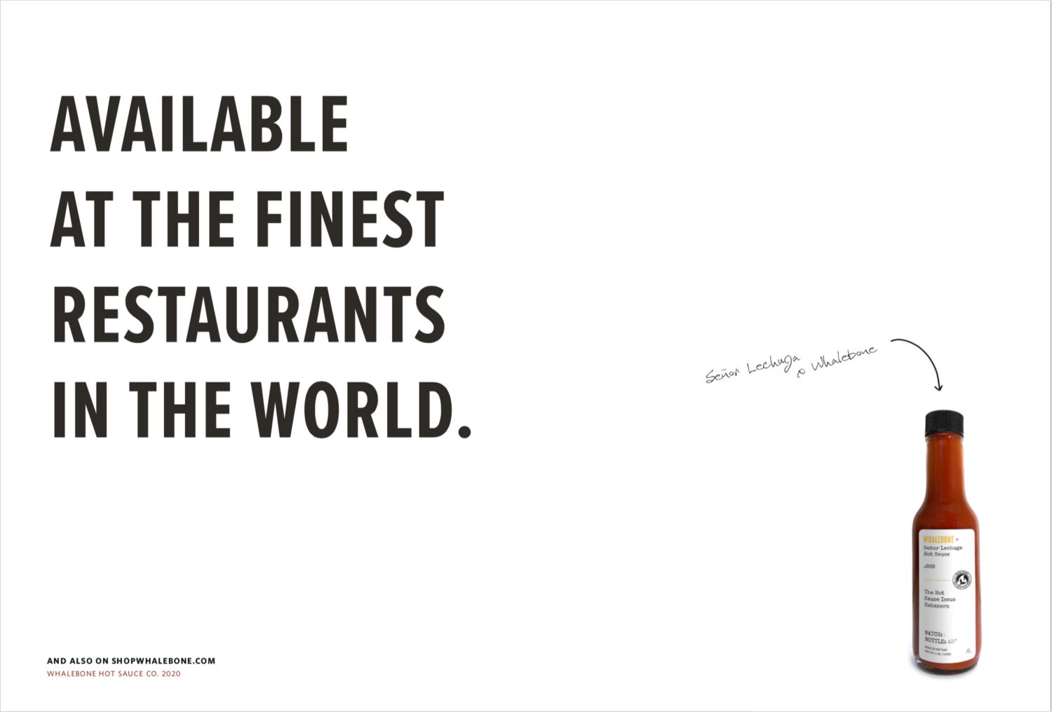 “Someone may or may not have mentioned it, but when Whalebone got the opportunity to make our own hot sauce with the help of our friends at Señor Lechuga, our minds went straight to all the things we were going to put it on. Cue culinary artist and the all-around calming presence of private chef Jessica Monty. Jessica has honed her love of food into bringing comfort and care to the people she cooks for, bringing a dinner party flair that doesn't take itself too seriously. We asked Jessica what she might use the Whalebone x Señor Lechuga hot sauce in and to put together a dish to knock your socks off. This is what she crafted—and suffice to say, the socks are indeed off.”