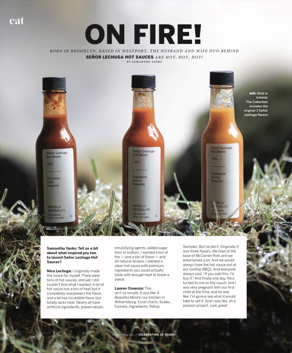 “We sat down with the Lechugas, Nico and Lauren with a guest appearance from Baby Lettuce and the little Lettuce Jr. on the way, for a heated discussion about starting up one of the better hot sauce brands out there out of your kitchen in Williamsburg while you are super pregnant, laughing in the face of work-life balance, how Señor Lechuga Hot Sauce added the fire to Shake Shack's special Game of Thrones burgers, and just being caliente as fuck and owning it.”