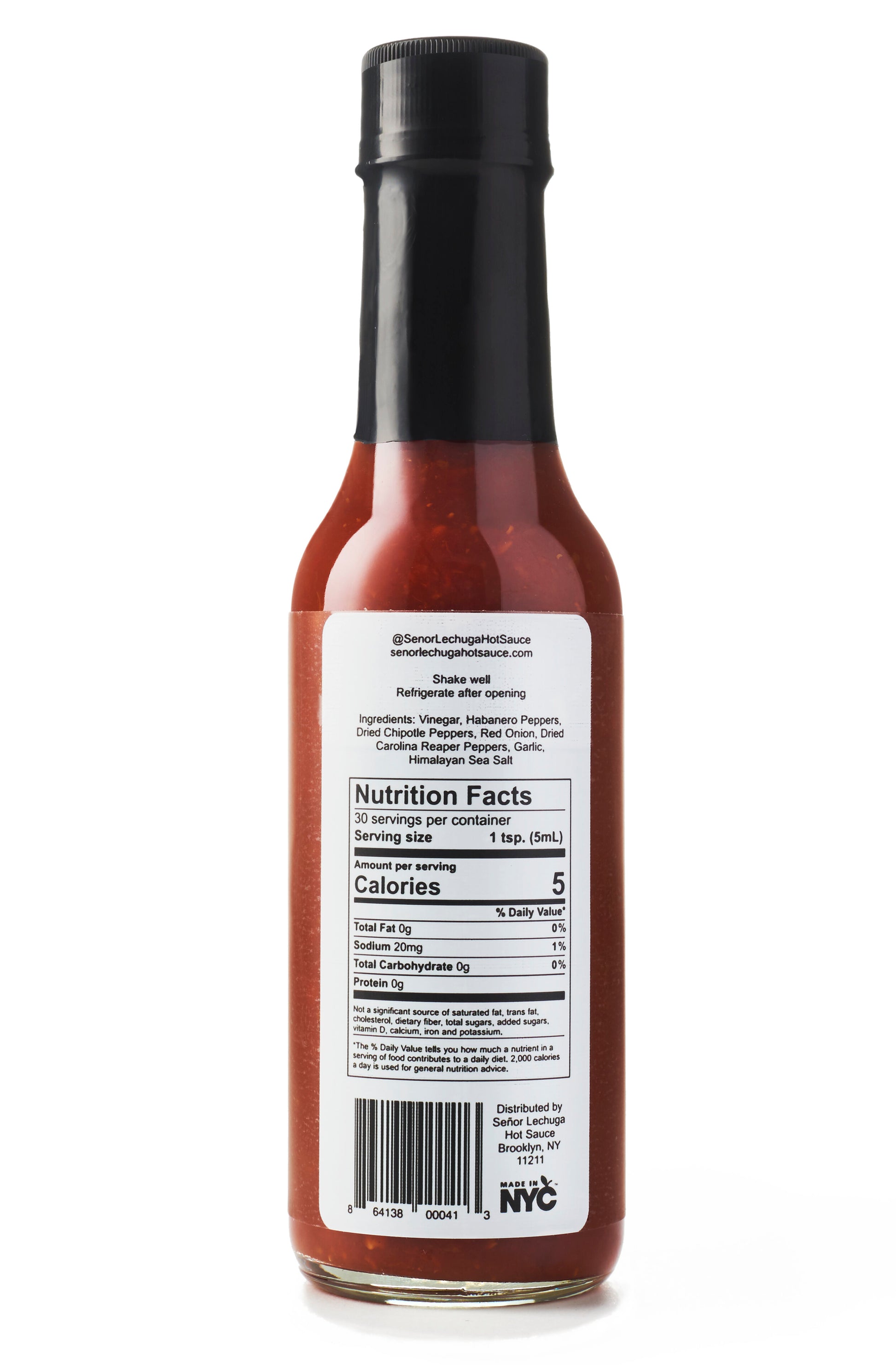 Serving up the smoky flavor of chipotle... with a massive side of heat. Whether you are looking for a sauce to blow minds at your next bbq, or just looking to add some complexity to any dish, this is your bottle.